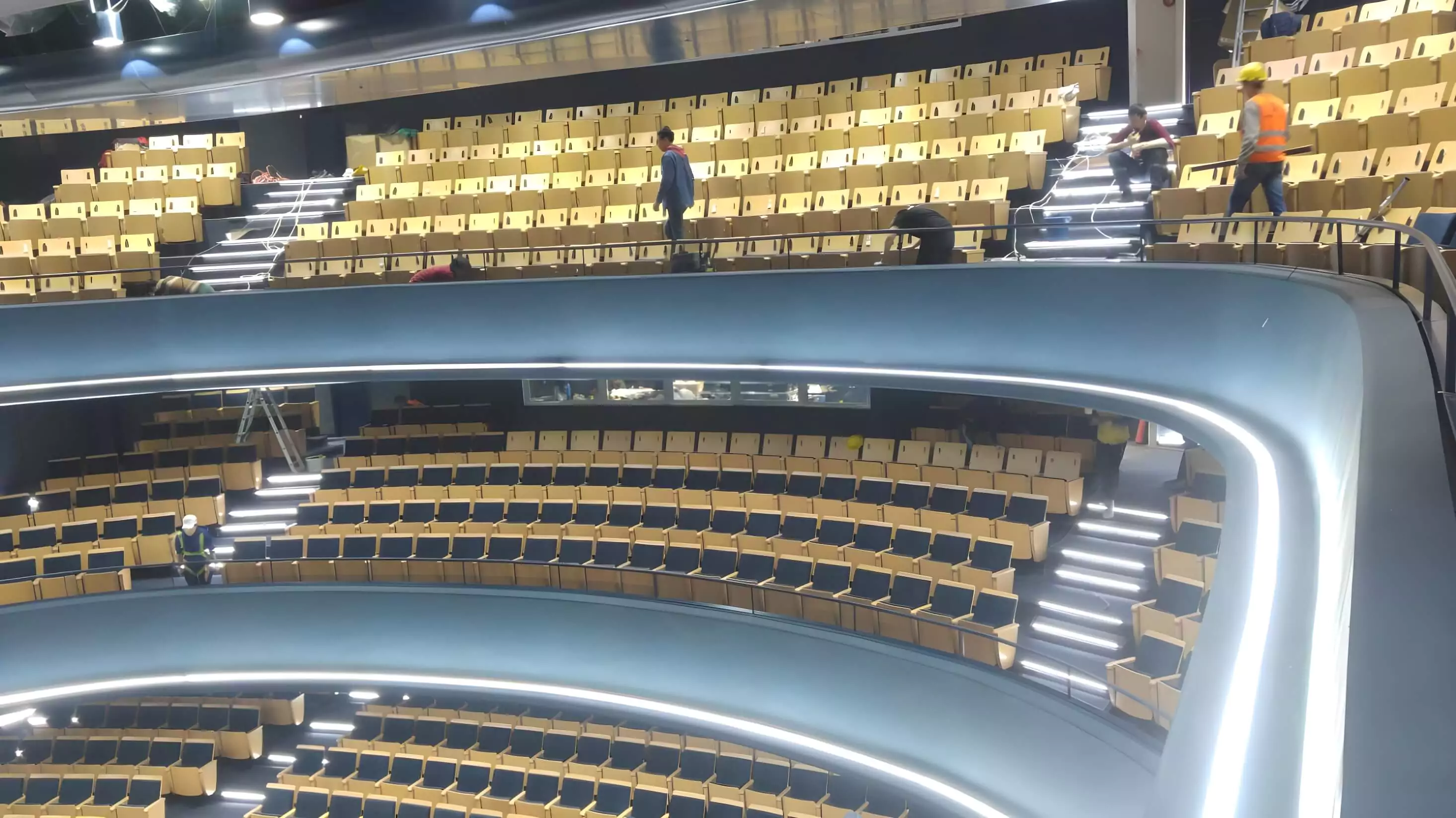 Custom auditorium seats, crafted to meet the specific needs of this modern European venue.