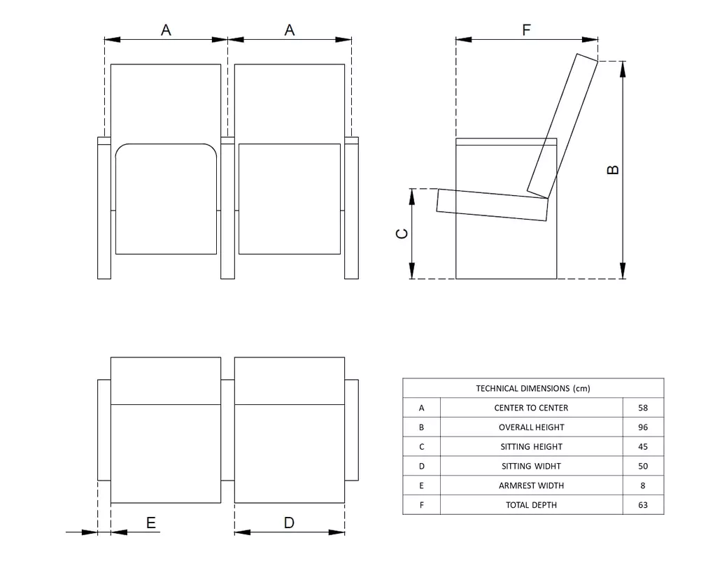 This fully upholstered seat offers a foldable design, making it a comfortable and space-saving option for dynamic auditorium layouts.