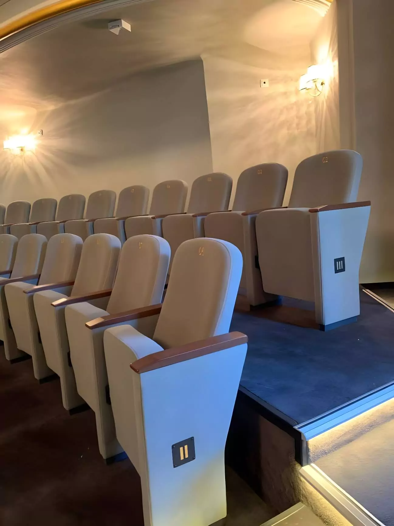Premium auditorium seats, manufactured to meet the highest European quality standards, enhancing this elegant venue.