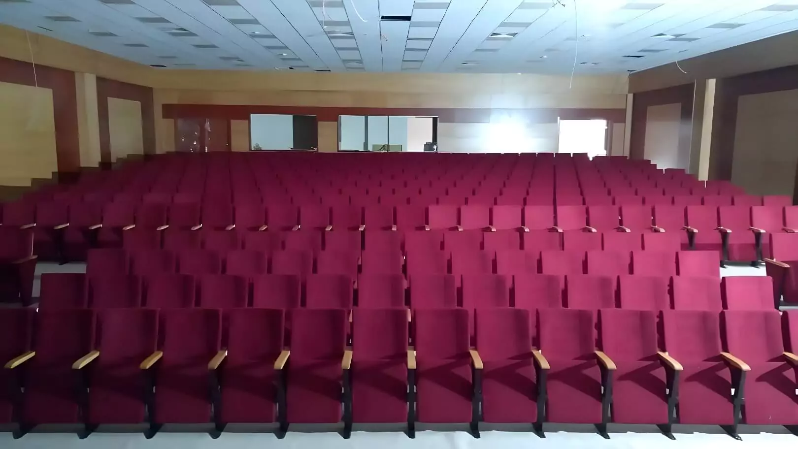 Durable auditorium seats, crafted for longevity and installed in a modern educational auditorium.