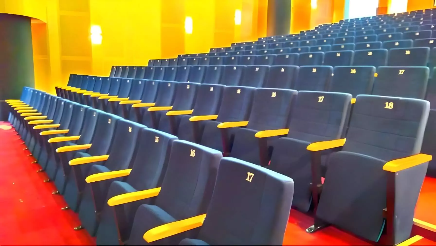 European-standard auditorium seating, installed in a state-of-the-art facility for maximum comfort and style.